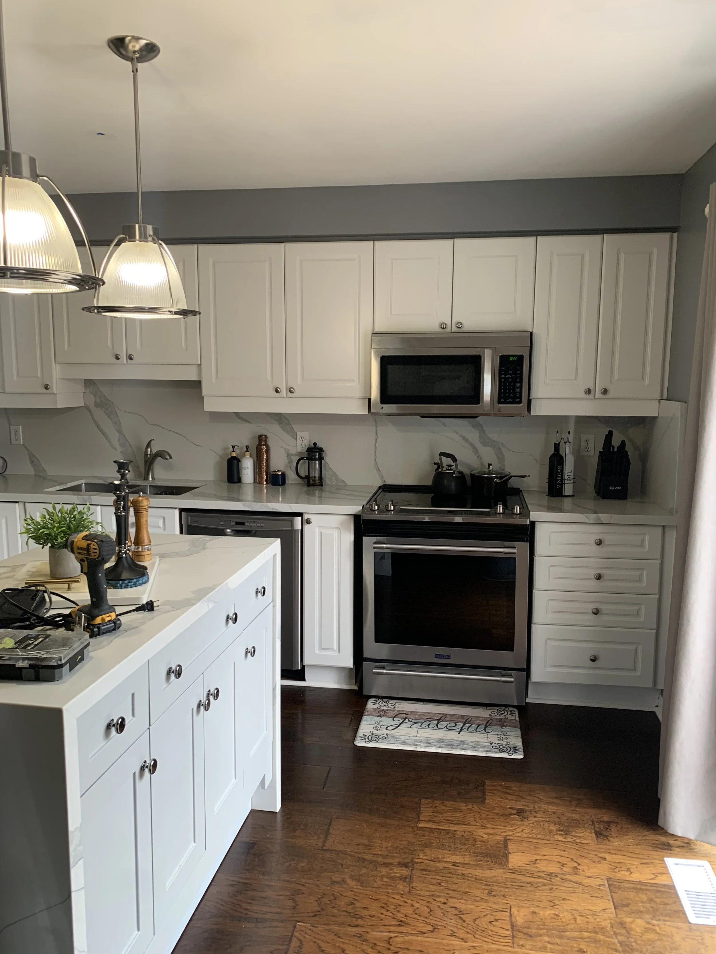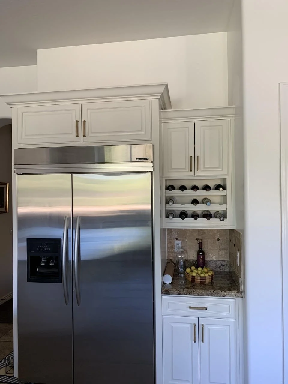 We use professional-grade materials from brands like Renner for cabinets, Benjamin Moore or Sherwin-Williams for walls, depending on what suits your cabinets best. No hardware store shortcuts.
