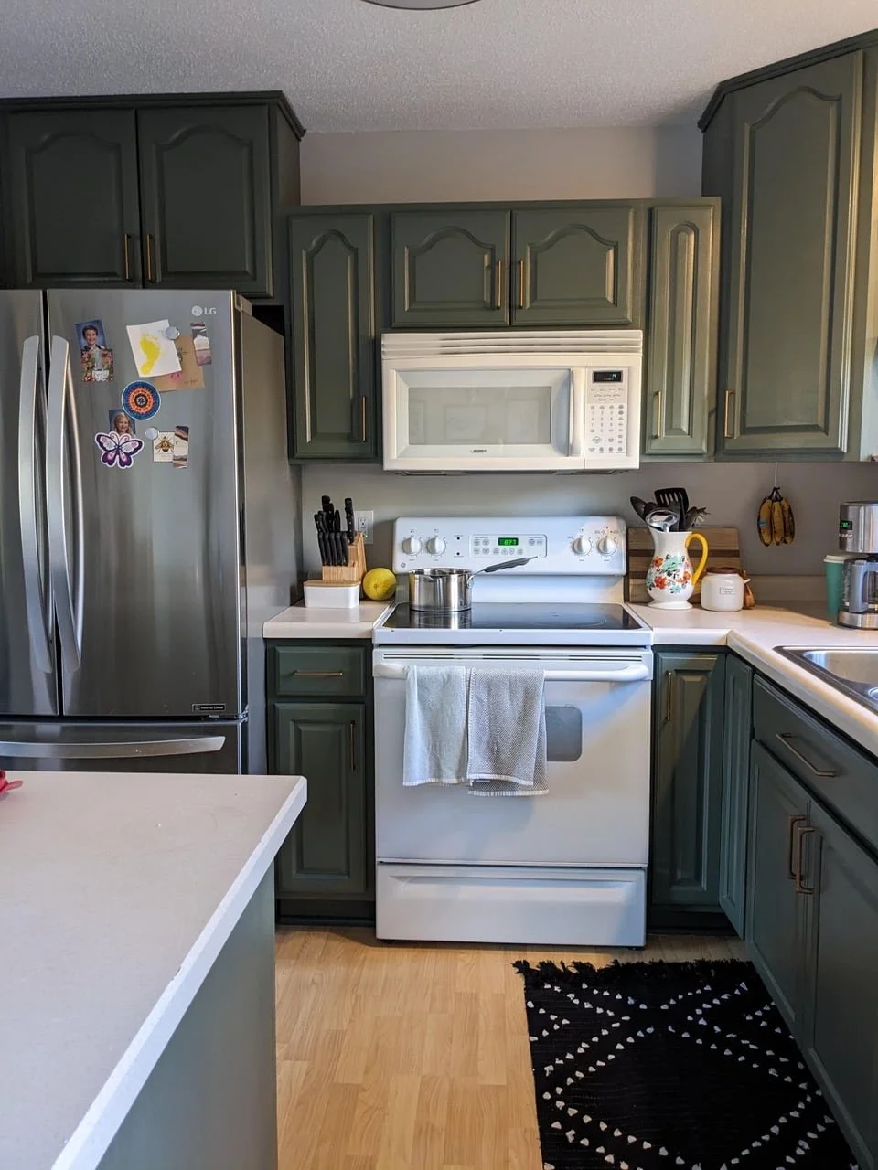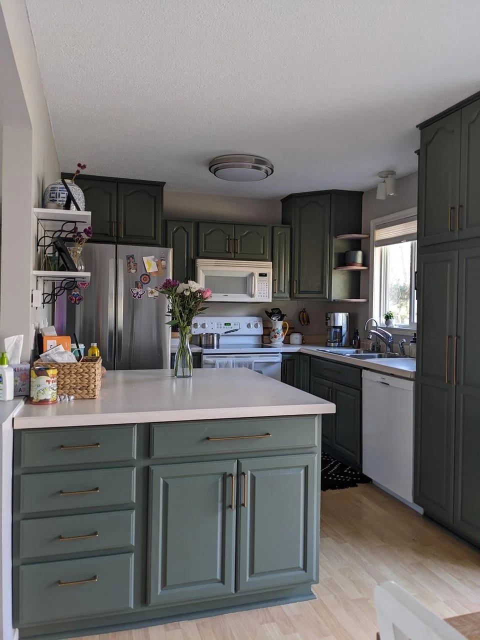 We use professional-grade materials from brands like Renner for cabinets, Benjamin Moore or Sherwin-Williams for walls, depending on what suits your cabinets best. No hardware store shortcuts.